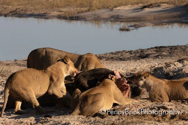 We were on a game drive, not the boat, this early morning. The guides knew that a large pride had taken down a buffalo in the night. More lions kept marching in from a distance. So much action at one site. We spent about 4 hours there!